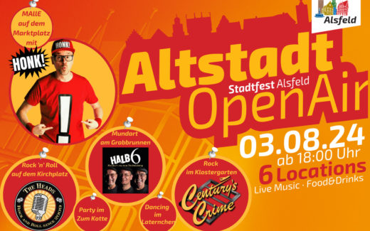24. Juli 2024Stadtfest Alsfeld – Das Altstadt Open Air – lockt am 03.August mit vielseitigem Programm an verschiedenen Locations
