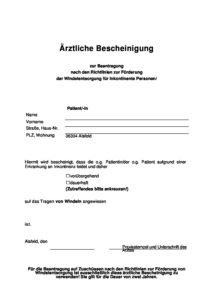 • Ärztliche Bescheinigung Inkontinenz