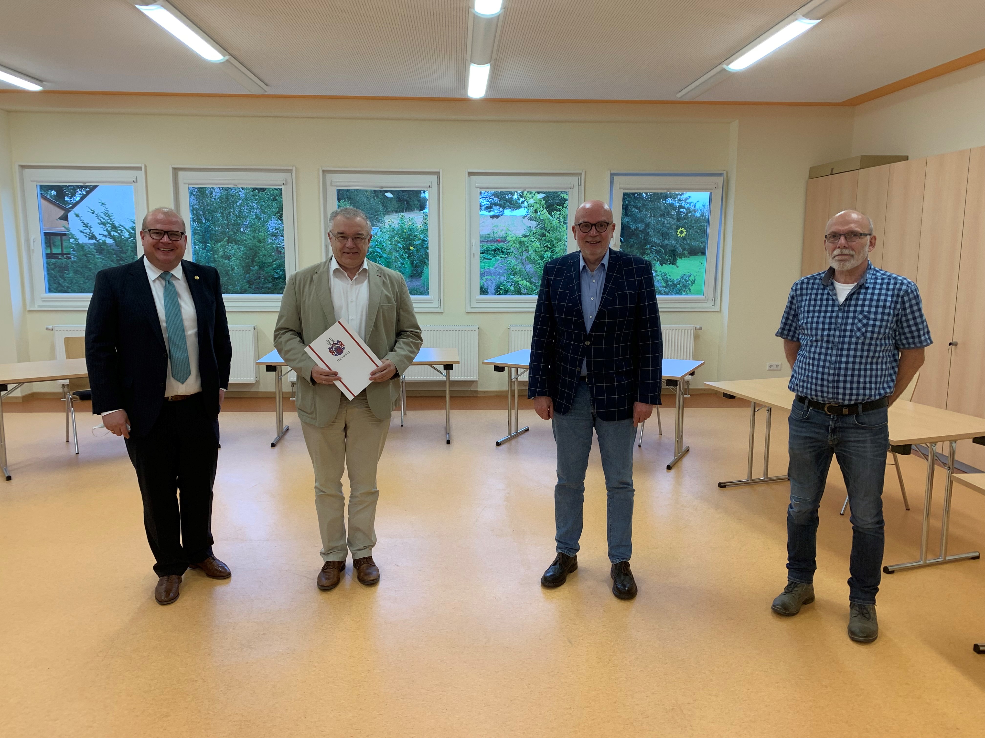 Im Rahmen der Ortsbeiratssitzung in Lingelbach am 25. August 2021 zeichnete Bürgermeister Paule Dr. Arno Wettlaufer mit gleich zwei Titeln „Ehrenstadtverordneter“ und „Ehrenmitglied des Ortsbeirates“ aus.  Der Ortsvorsteher Gerd Hebel, Stadtverordnetenvorseher Michael Refflinghaus und die Ortsbeiratsmitglieder freuen sich für den Geehrten.