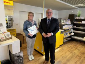 Insbesondere den Erhalt der fußläufigen Versorgung in der Innenstadt mit Postdienstleistungen hob Bürgermeister Paule in seiner Gratulation und dem Dank für das unternehmerische Engagement der Inhaberin nochmals besonders hervor.