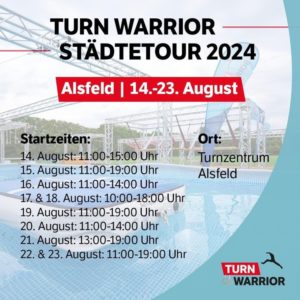 Im August steht der nächste Stop der Turn Warrior Städtetour an. Vom 14. bis 23. August steht der Turn Warrior mit seinem Parkour auf dem Gelände im Turnzentrum Alsfeld.